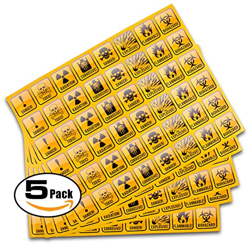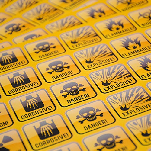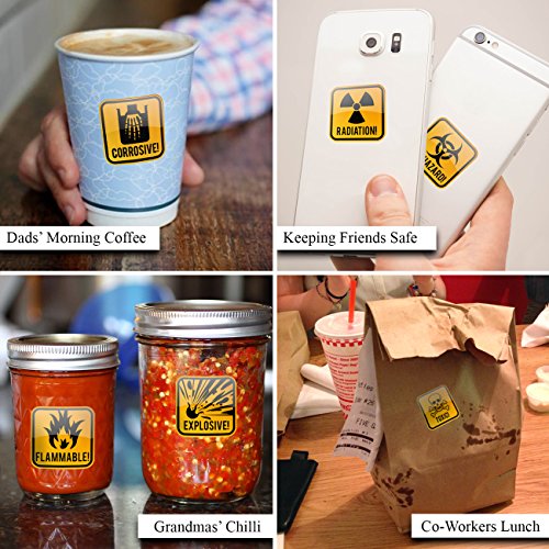 Funny Gag Gifts or Prank / Joke Decal Stickers: Hazard Danger Toxic Radiation Symbol Alert etc use on Your Favorite Food Containers, Box, Meal Prep Bag, Water Bottle, Coffee Tea Mug | 200-Pieces