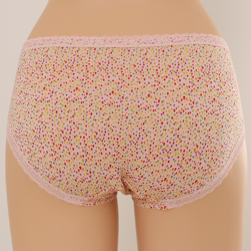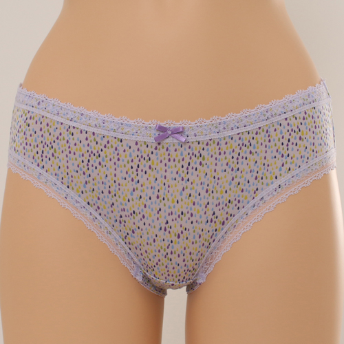 은은한 광택의 물방울 나염소재를 사용하고 허리,다리 둘레에 섬세한 자카드레이스를 매치하여