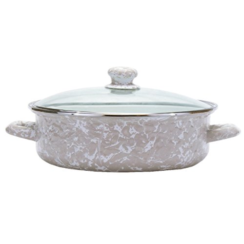 -. Feature : 5 Quart Saute Pan - Measures 10.25 Inch Diameter - Stand 3.25 Inches Tall / Beautiful Taupe Swirl Pattern on Porcelain Enamel Finish / Part of the Golden Rabbit Taupe Swirl Collection / Stainless Steel Rims for Extra Durability / Oven and Stovetop Safe - Works with Induction - Dishwasher Safe - Not Intended for Microwave