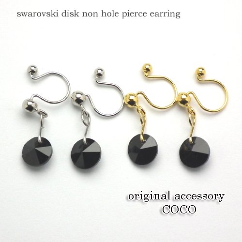 아뜰리에 자《스》 스와로브스키 디스크 non홀 피어스(귀걸이) 귀걸이 블랙 검정 레이디스 원반형 #등이다 꾸중 non투 루 클립 수작업 일본제 non홀 귀 링 swarovski