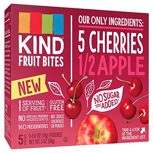 KIND fruit bites 5 cherries 1/2 apple bar, no sugar added 0.6ozx5 bars, total 3oz