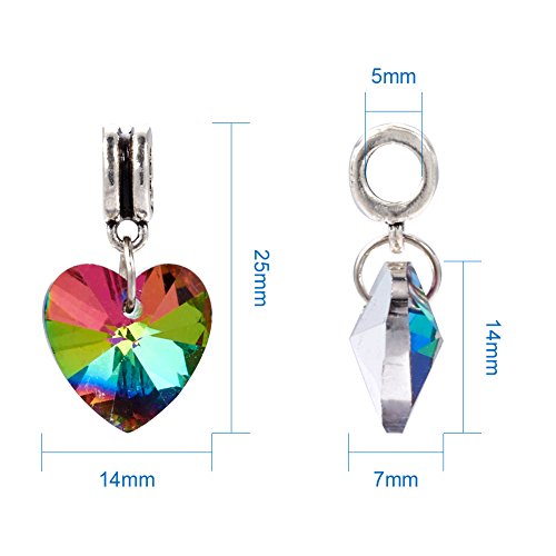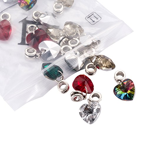 Kissitty 50-Piece Electroplated Glass Dangle Heart Pendants Large Hole Randomly Assorted Color 25mm Fit European Style Jewelry Making
