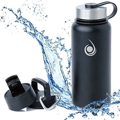 -. Title : Stainless Steel Water Bottle 32oz by Red Hydration Vacuum Insulated BPA & Toxin FREE Leak Proof Sweat Proof Hot & Cold Up to 24 Hours Includes 3 Lids & Carabiner Good for Kids Eco Friendly