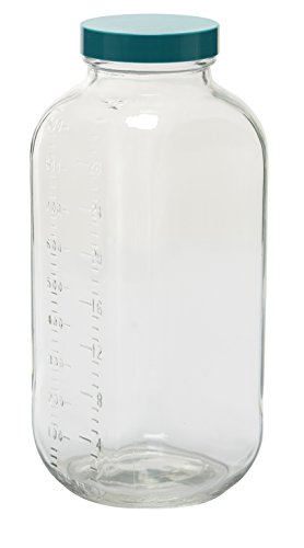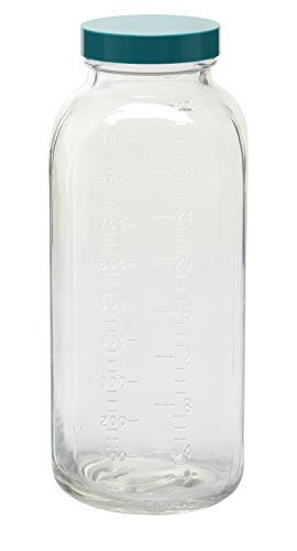 Vestil BTL-SG-G-32 Glass Square Graduated Bottle with Green Cap, 32 oz Capacity, Clear