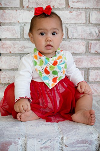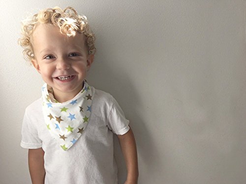 Keep baby dry with fashionable 100% cotton drool bibs that are soft and absorbent yet breathable and adjustable to fit infants / newborns and toddlers. Each bib is reversible and has three plastic snaps, one snap on one end and two on the other to provide an adjustable fit that grows with your baby. Bibs will fit a neck circumstance from 35 cm to 40 cm.