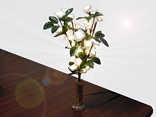 Mansa Décor, White Rose LED Decorative Bouquet, 60 LED Elements, 25W Equivalent (With Leaves)