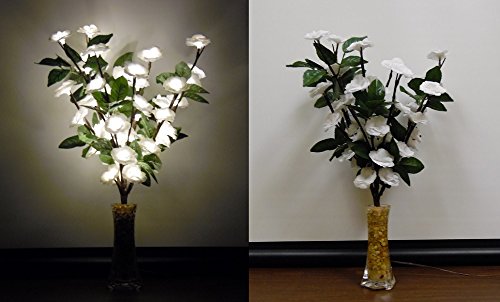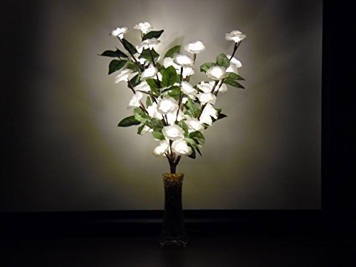 - White Rose LED Decorative Bouquet, 60 LED Elements, 25W Equivalent (3W, 240 Lumens), With Leaves