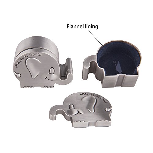 Feyarl First Curl and First Tooth Keepsake Box for Kids Metallic Engraved Elephant Shape (2.4 x 1.6 x 1.2 inches)