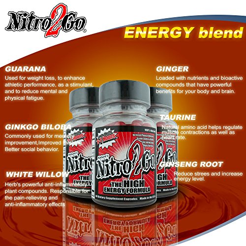 -. Binding : Health and Beauty -. Brand : Nitro2Go, Inc. -. EAN : 0796711120013 -. Feature : INCREASE PHYSICAL ENDURANCE : regain engery fulltime, Fuel your body with perfect combination of all-natural herbal stimulants like ginseng, caffeine, amino acids and green tea. Good performance enhancer drink for extremely active male and female. Proven strongest superfood in a bottle / GREATER STAMINA & VITALITY : The best and perfectly concentrated bio-energy stimulant for adults to stay focused everyday. / MENTAL ALERTNESS : increased mental alertness. Stay focused overtime. Experience maximum health power / EASY TO TAKE : Fast Acting Energy booster for better endurance during workout or preworkout. -. IsAdultProduct : 0 -. Label : Nitro2Go Inc. -. Manufacturer : Nitro2Go Inc. -. PackageQuantity : 3 -. ProductGroup : Health and Beauty -. ProductTypeName : HEALTH_PERSONAL_CARE -. Publisher : Nitro2Go Inc. -. Studio : Nitro2Go Inc. -. Title : Nitro2Go High Energy Formula (3 BOTTLES) Fast Acting Energy Pill Supplement for Men and Women guaranteed strength booster enhancers packed with natural vitamins and improved nutritional formulas. -. UPC : 796711120013