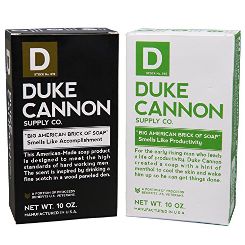 -. Binding : Misc. -. Brand : Duke Cannon -. Color : Black, White -. EAN : 0656103027453 -. Feature : Duke Cannon Brick of Soap - Two Pack / Big American Productivity & Accomplishment Bars / Lasts Three Times Longer Than Traditional Bar Soaps / Why Buy Dainty Bar Soap When You Can Buy A Manly Brick? / A Portion Of Proceeds Benefits U.S. Veterans -. IsAdultProduct : 0 -. Label : Duke Cannon -. Manufacturer : Duke Cannon -. MPN : ProductivityAccomplishmnet2pk -. PackageQuantity : 2 -. PartNumber : ProductivityAccomplishmnet2pk -. ProductGroup : Beauty -. ProductTypeName : BEAUTY -. Publisher : Duke Cannon -. Size : Large -. Studio : Duke Cannon -. Title : Duke Cannon Brick Of Soap - Big American Productivity & Accomplishment Combo Pack - 2 Bars of Soap -. UPC : 656103027453