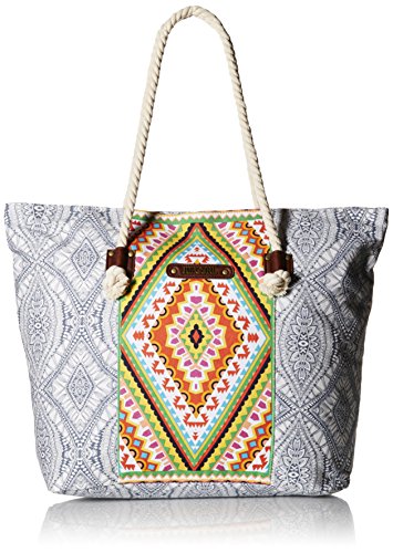 Hit the beach with this printed canvas beach bag, which has rope handles, a main zippered compartment, and an interior zip pocket.