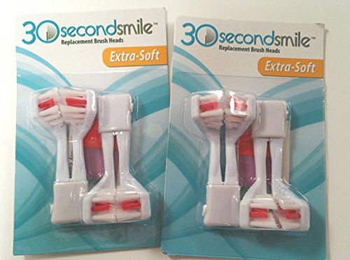 Bristles on all 30 Second Smile brush Heads are softer that any soft bristle brush on the market. Each pack includes two brush heads and should last for 90 days of twice-a-day brushing. All brush heads fit on all 30 Second Smile power handles.