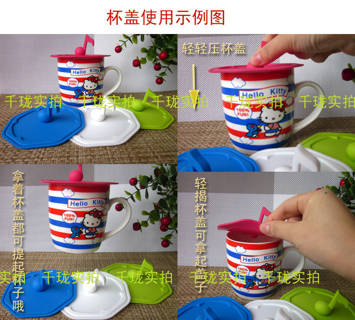 Cute and practical non-toxic silicone material cup cover, suitable for use in a variety of not the same height, width of different cups, the handle part is lovely notes, to facilitate the extraction. Silica gel material is soft, durable, resistant to high temperature, solid small notes can be disassembled for cleaning, clean and health.