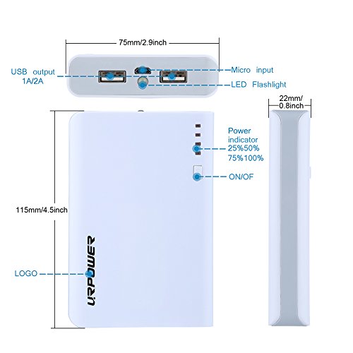 - Title : URPOWER® 10000mAh High Capacity Dual-Port USB Charger Power Bank Backup External Portable Mobile Battery Pocket Extensive Charger for iPhone 6 Plus,iPhone 6, iPhone 5s, 5c, 5, 4s, 4, 3gs, iPad 4, iPad Air, the New iPad, iPad Mini; Samsung Galaxy S5, S4, S3, S2, Note 4, Note 3, Note 2; HTC One, Evo, Droid Dna, Motorola Atrix, Droid, Google Glass, Nexus 4, LG Optimus,smart Watch,bluetooth Speakers or Headsets and Other Usb-charged Device (Apple Lightning Adapter NOT included)