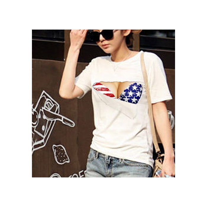 가슴과 브라가 보이고 # 젖가슴T셔츠 3D 재미 프린트 L사이즈 Ts_001