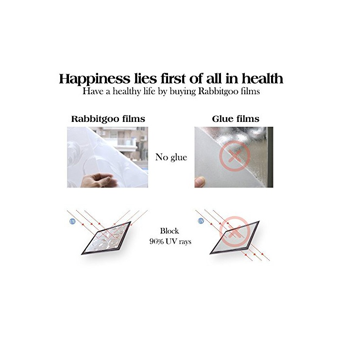 Rabbitgoo 3D유리 필름 창용필름 차열단열 UV컷 눈 가림 장식 회의실 욕실 눈 가림 씨트 무접착제 수 것만으로 간단 붙이기 재이용 가능 투명 필름 업그레이드판 DIY