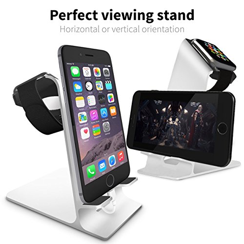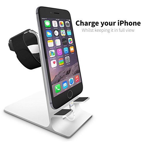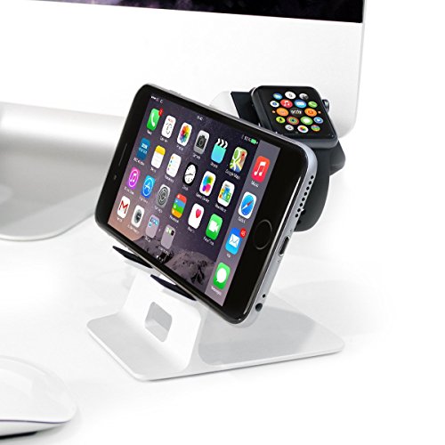 Orzly Charge Station for Apple Watch and iPhone - Aluminum - DuoStand Silver