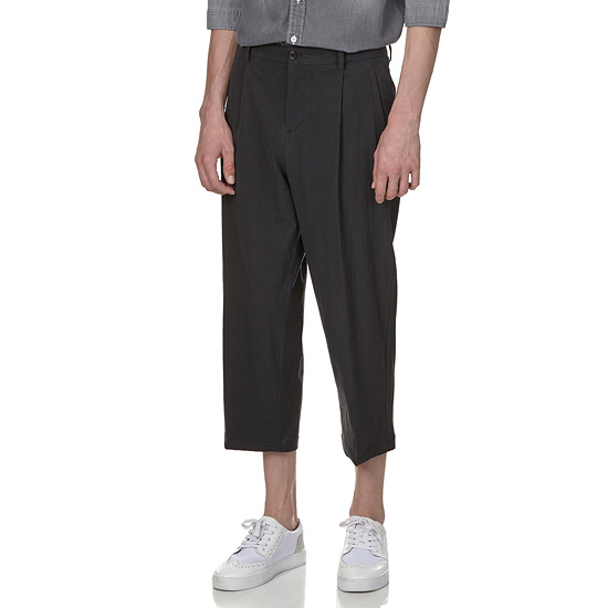 - 원턱을 적용하여 여유로운 실루엣의 남성 팬츠.
