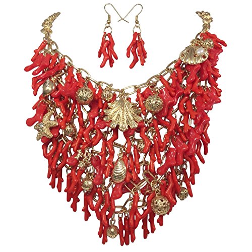 -. Title : Sealife Bib Nautical Boutique Style Statement Beach Necklace & Dangle Earrings Set