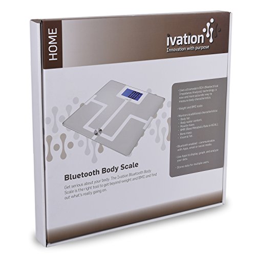 Ivation Bluetooth Digital Smart Scale with FREE App for iPhone, iPad, iPod (Supports HealthKit App Integration) & Android Smartphones & Tablets, White