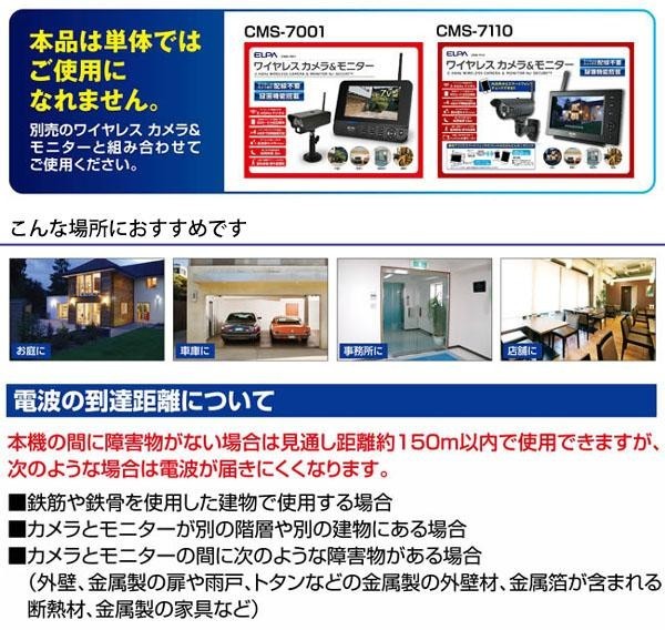 屋外にも対応、ホコリの侵入を防ぐ耐塵型です。雨にぬれても安心の耐水型IP66です。ワイヤレスで映像を送信(2.4GHzデジタル)することも可能です。1台の液晶モニターに対して4台まで登録する事ができます。 |
