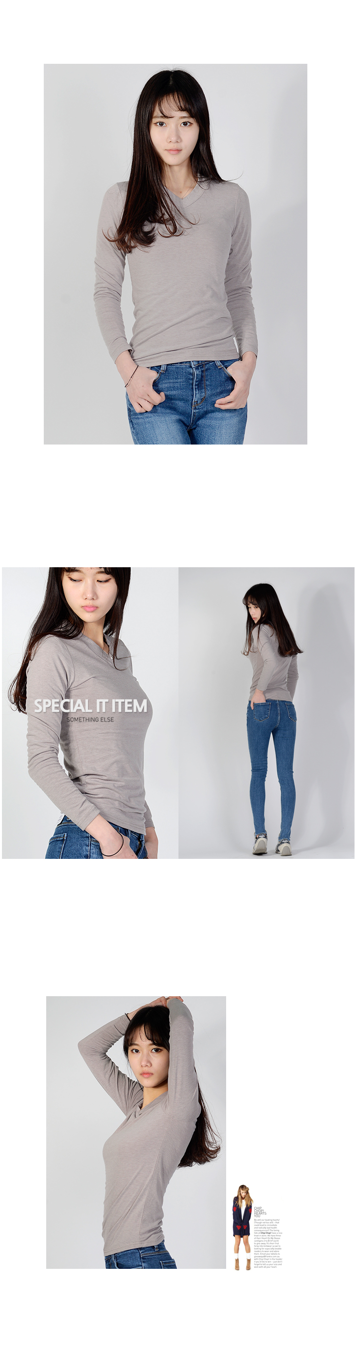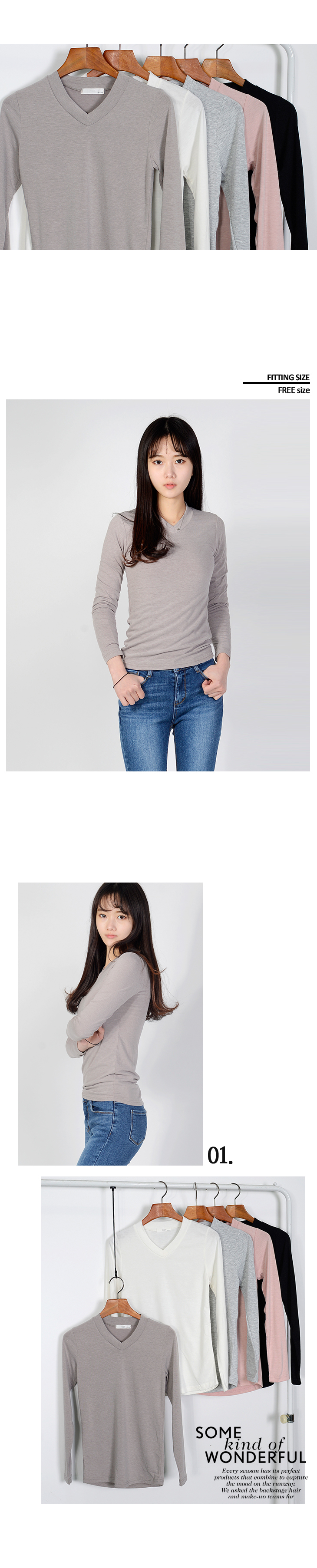 베이직한 무드의 스판긴팔티셔츠를 소개합니다.