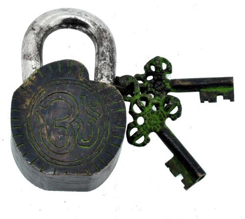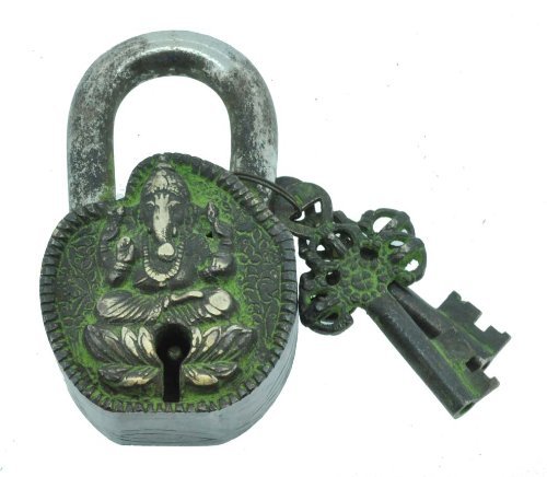 Handmade Ganesh Ganesha Lord of Success Tibetan Monastery Padlock, Tibetan Mantra Prayer Padlock