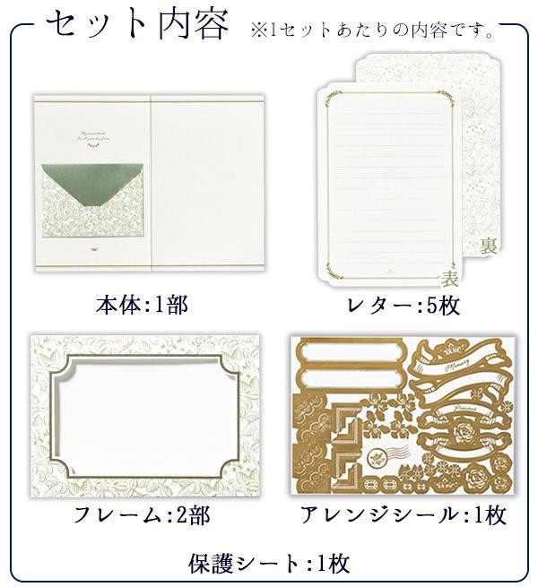 | セット内容 | 3セット ※1セットあたり/本体:1部、レター:5枚、アレンジシール:1枚、フレーム:2部、保護シート:1枚 |