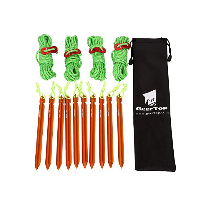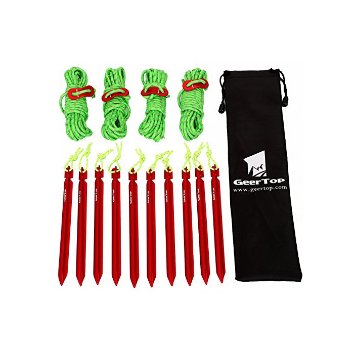 원본상품명: GEERTOP 10本入り18cm アルミ テント ペグ テンショナ付き 4mm 反射材入り ガイライン ハイキング キャンプ 登山用 ポチ