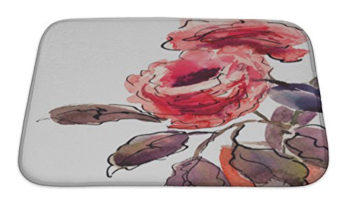 Gear New No Slip Microfiber Memory Foam Beautiful Roses Flowers Bath Rug Mat, 24" X 17"