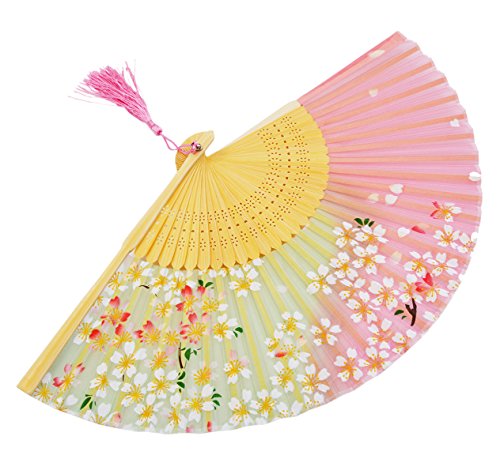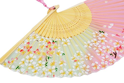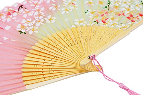 Amajiji Chinese Style Butterfly Flowers Pattern Lace Bamboo Handheld Folding Fans for Girls Women (2)