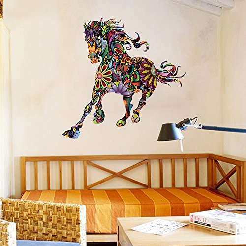 -. Title : EMIRACLEZE Christmas Gift Hot Sale Pentium Horse Flower Colorful Pattern Sofa Background Personality Removable Mural Wall Stickers Wall Decal for Living Room Decor