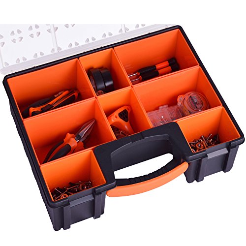 UMI 8 Bin Compartment Portable Tool Organizer Storage Box Multi-purpose Toolbox for Small Parts with Transparent Lid, PP, L16.6xW12.4xH4.0 inch