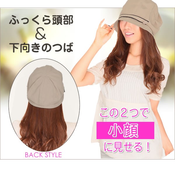 ふっくら頭部&顔の輪郭に沿った下向きのつば!この2つが小顔に見せる!オールシーズンOKの誰でもかぶりやすい帽子です。