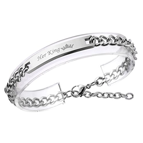 Grosse: Herrenarmband: Schrift "Her King", Fur Grosse des Handgelenks von 8.3"-10.2" (21cm-26cm); silber Lange: 46*7*3mm, Kette Dick: 7mm; Damenarmband: Schrift "His Queen", Fur Grosse des Handgelenks von 7.5"-9.4" (19cm-24cm); silber Lange: 49*5*3mm, Kette Dick: 5mm.