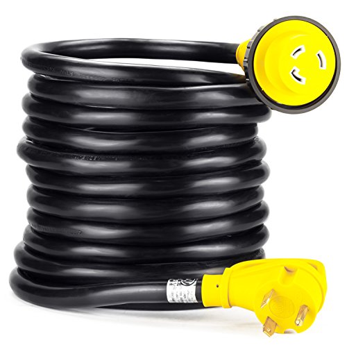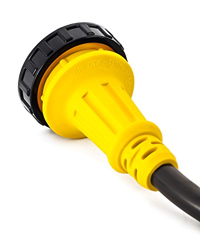 ClearMax 10AWG 25' Marine Power Cord Extension Cord with 30 AMP Power Grip Male Standard Plug and 30 AMP Female Locking Connector for Boat to Shore / RV - ( Black / Yellow )