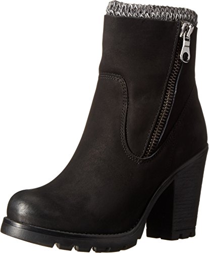 Short leather boot featuring knit lining at entry and dual zippers on shaft sides Chunky block heel Lugged outsole Brand : Steve Madden Item model num : Sweaterr MPN(PartNumber) : SWEATERR-203 EAN : 0889163748338 Product Dimensions(LxWxH) :
