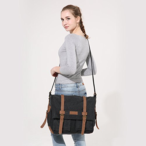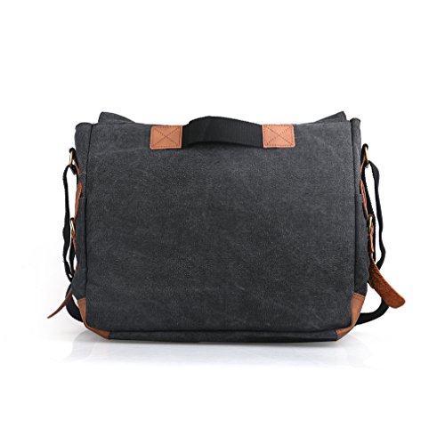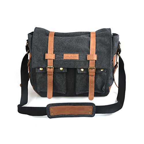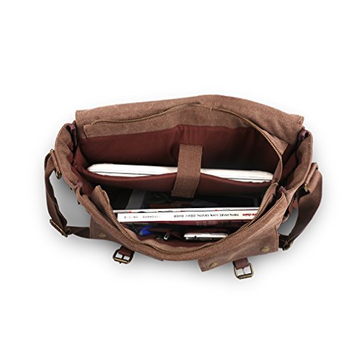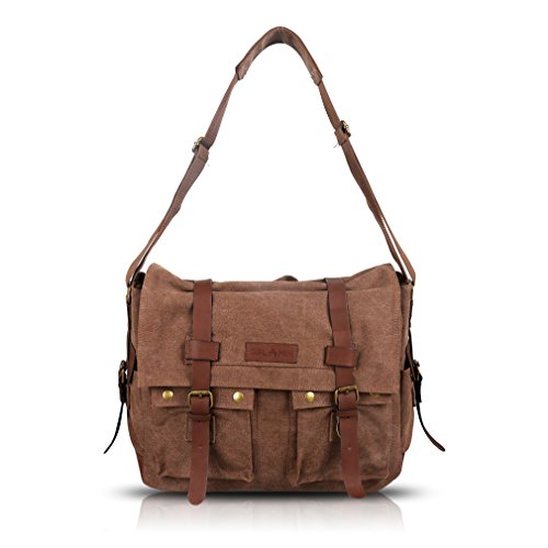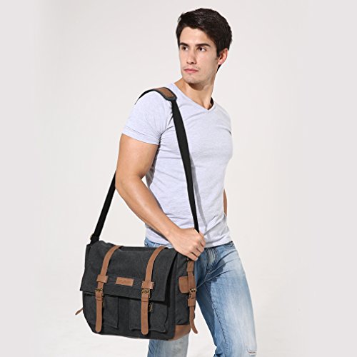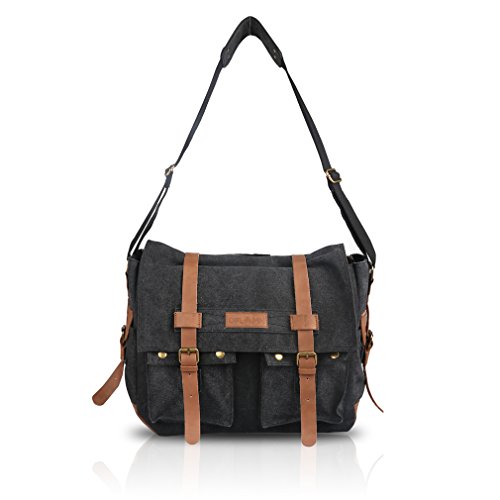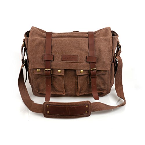 -. Title : Oflamn Vintage Messenger Bag, Leather Canvas Shoulder Bag for Laptops Up to 15 Inches