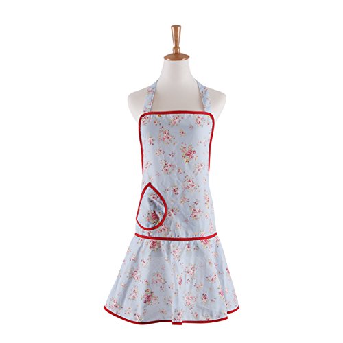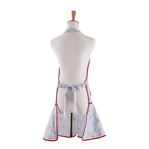 Neoviva Cotton Kitchen Apron for Women with Pocket, Floral Ballad Blue