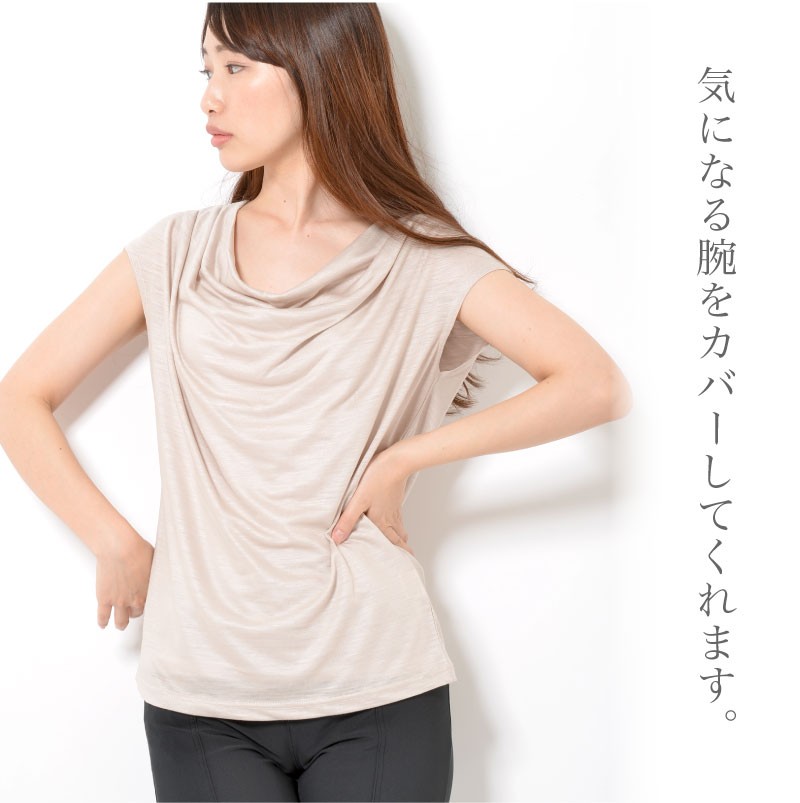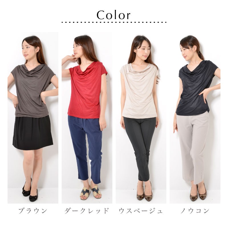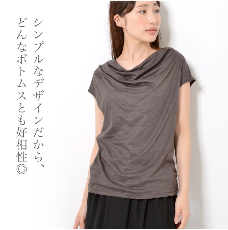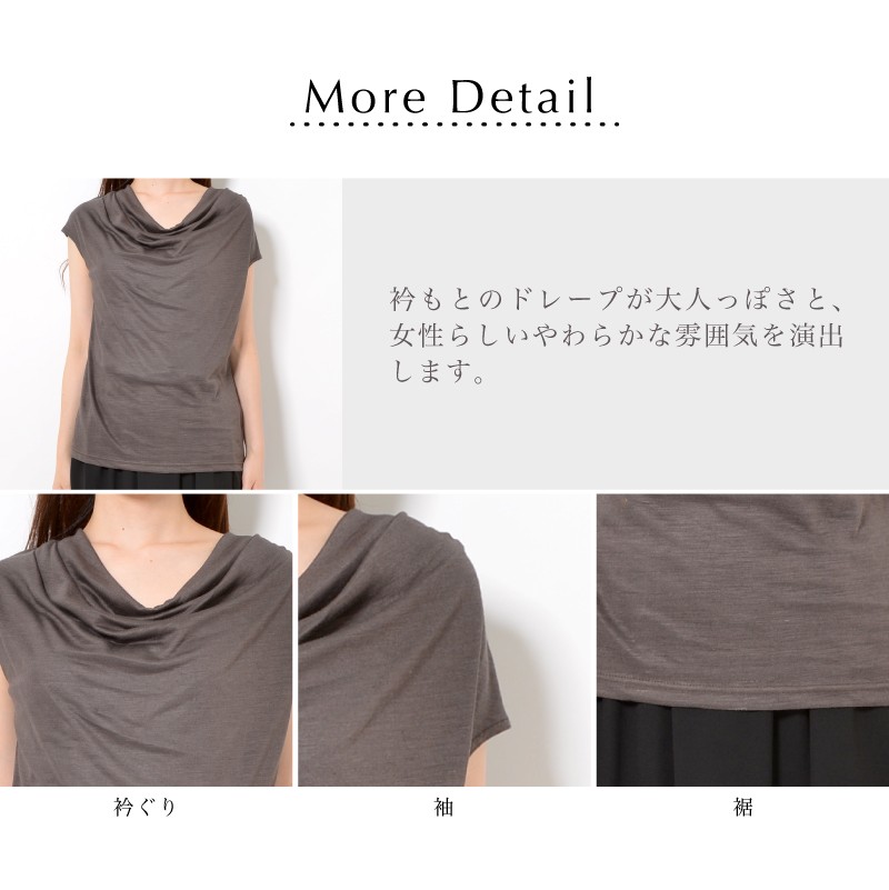 衿もとのドレープが大人っぽさと、女性らしいやわらかな雰囲気を演出します。