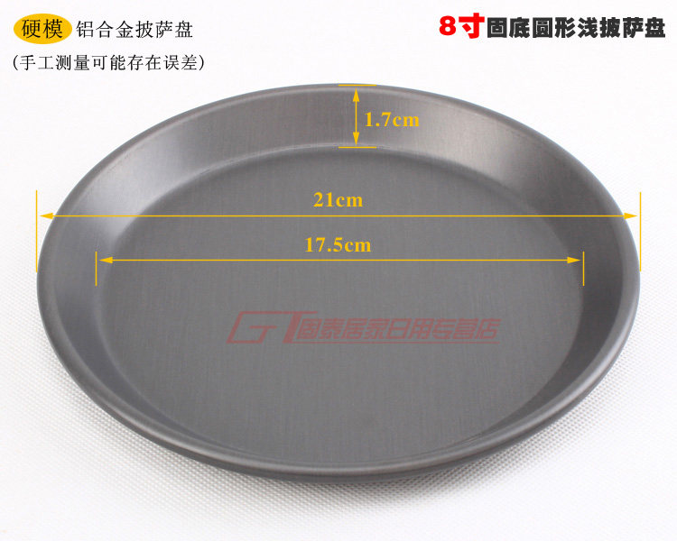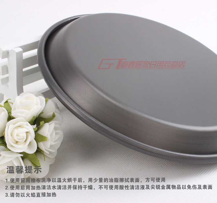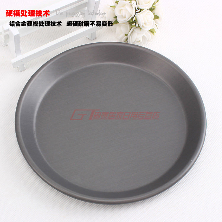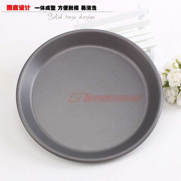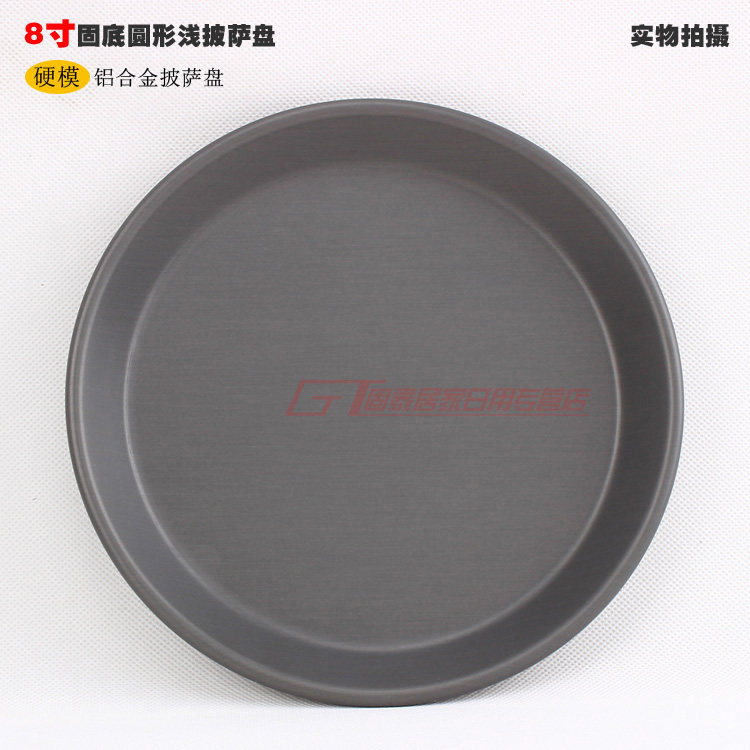 产品特点:超硬耐磨、导热快不易变形、耐化学腐蚀、不易氧化,表面电镀不粘技术,干净卫生易清洁,产品适合于披萨于挞派等Name: 8 inch solid bottom round pizza tray