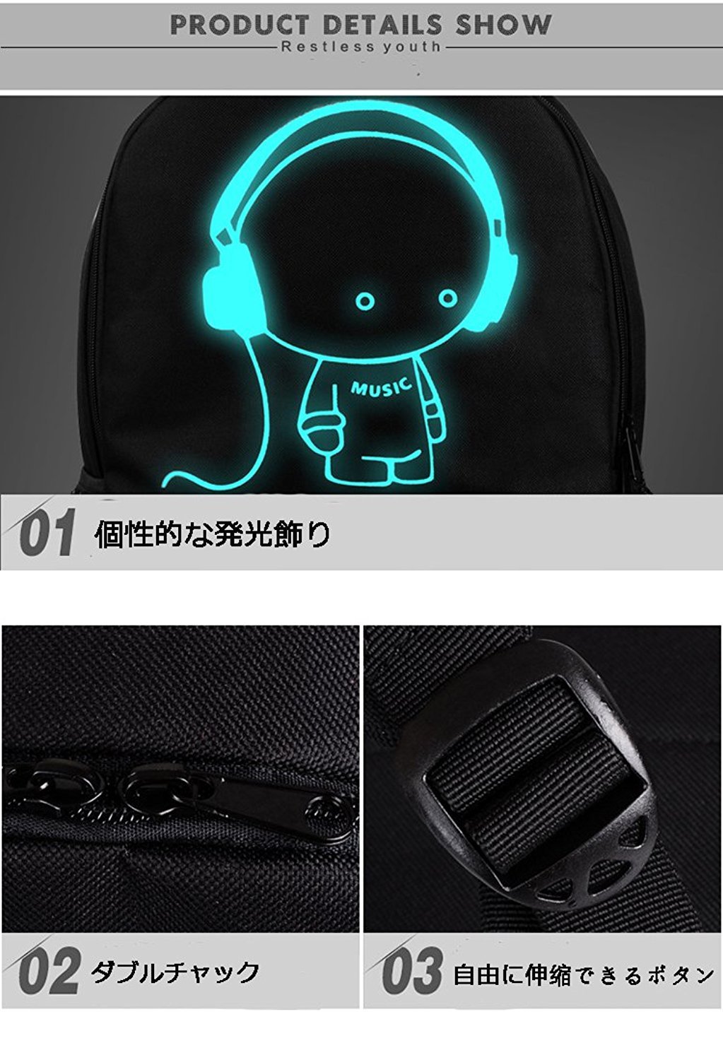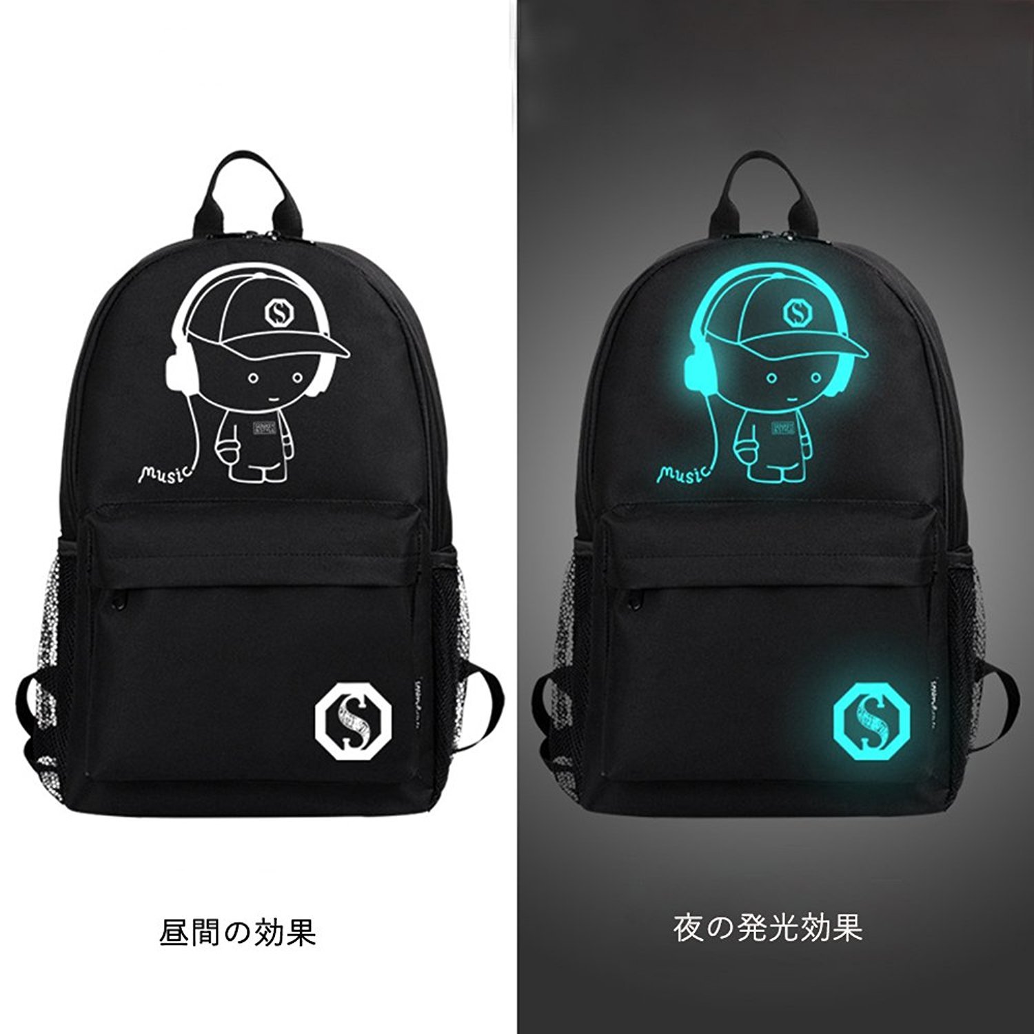 The design decoration on the front of the bag absorbs the sunlight and can emit natural light at night!