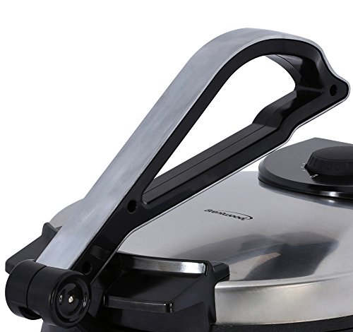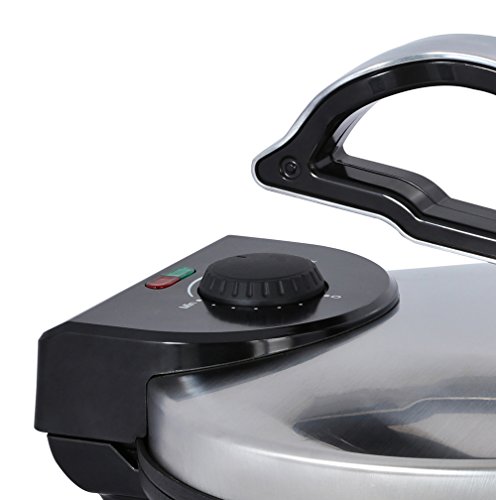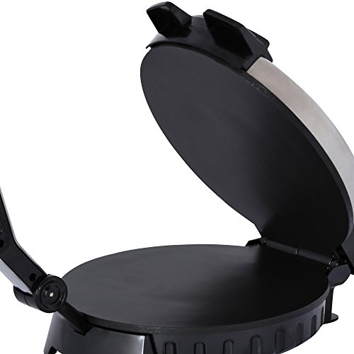 Use the Brentwood TS-128 Stainless Steel Non-Stick Electric Tortilla Maker to cook perfectly round and authentic 10 inch tortillas. Adjustable heat gives you the power to make soft or crispy tortillas. Clean up is a breeze thanks to the non-stick aluminum plates. Indicator lights illuminate when the unit is powered on and once heat is hot and ready. You can also use this tortilla press to make flat bread, chapatti, roti, mandarin pancakes and more.Feature