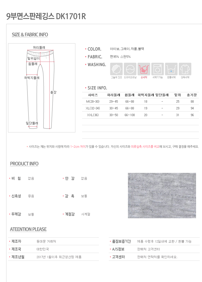 Cotton Spandex 9 Leggings DK_1704R Big Size
