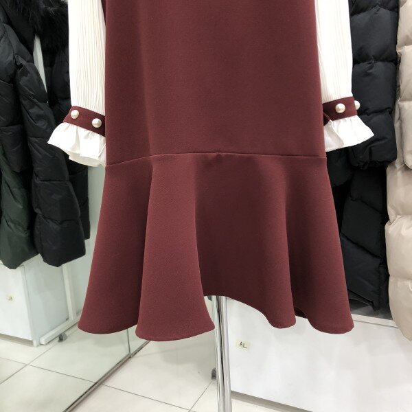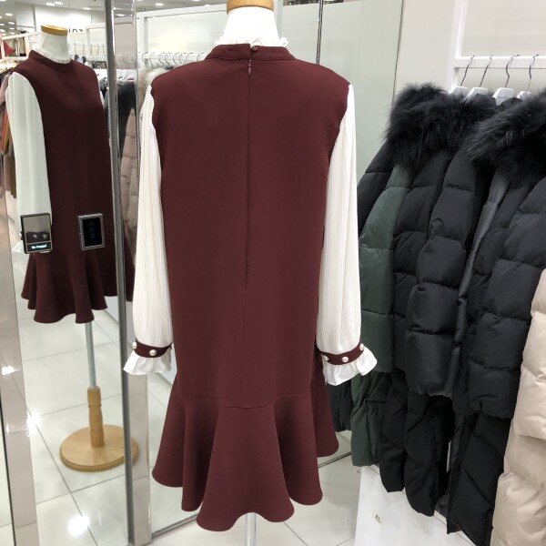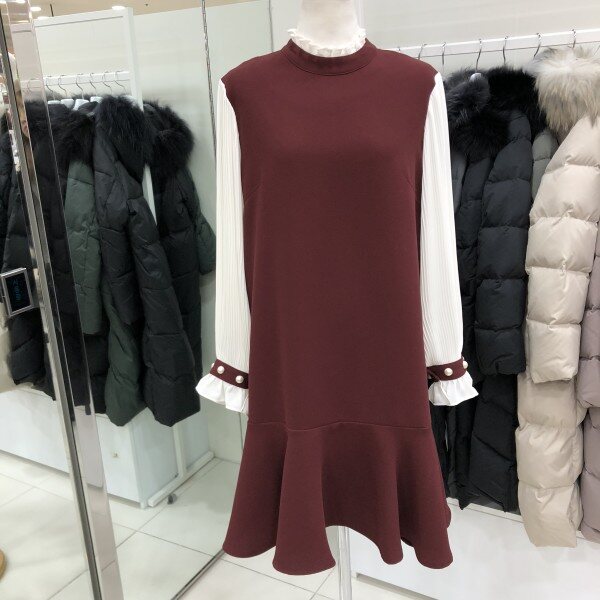 소매기계주름배색박시훌원피스정장스타일 원피스 입니다살짝 박시한 스타일로 전혀 불편함 없이 착용 할수 있습니다.뿐만아니라 밑단프릴이 있어 단화와 코디하여 캐쥬얼하게 착용하기도 좋은 디자인입니다