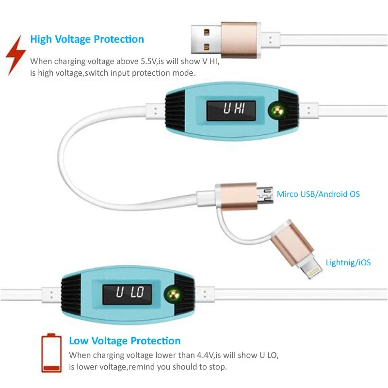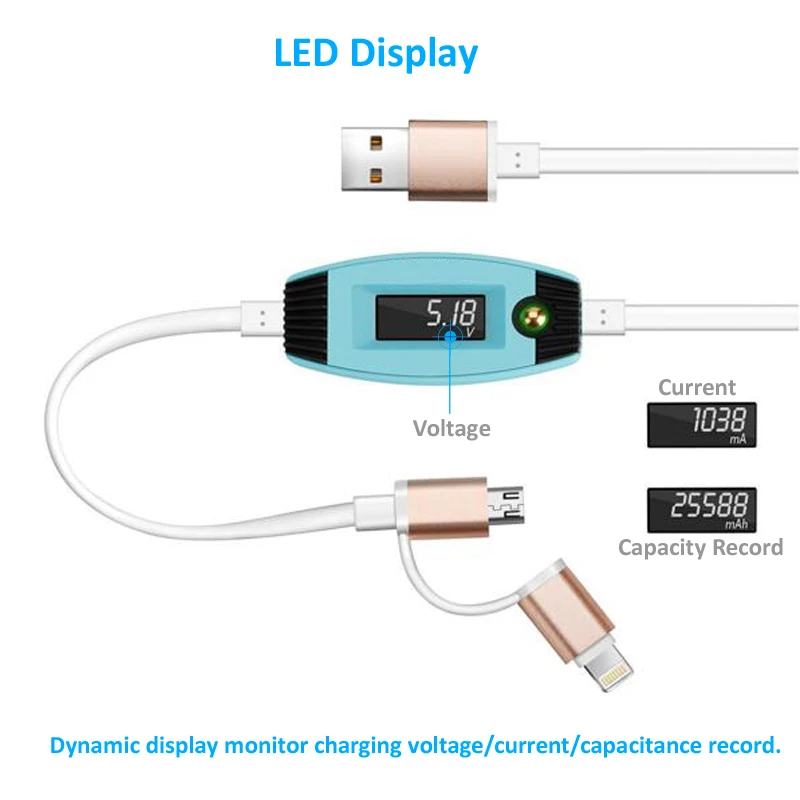 Name:2 NI 1 USB Cable With LCD Voltage Current Display