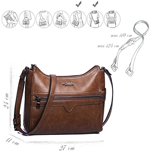 Zip CrossBody Bag Women Multi Pockets Shoulder Bag Pu Leather