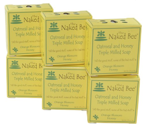 Naked Bee Moisturizing Orange Blossom Honey Oatmeal and Honey Triple Milled Soap 2.75 Oz Bar Pack of 6. Produces a Gentle Lather from Palm and Coconut Oils, rolled oats used for gentle exfoliation. Honey is used to heal and protect skin against moisture loss, and is also anti-bacterial. Also contains guar gum and beeswax. No dyes or pigments present, and not tested on animals.Feature