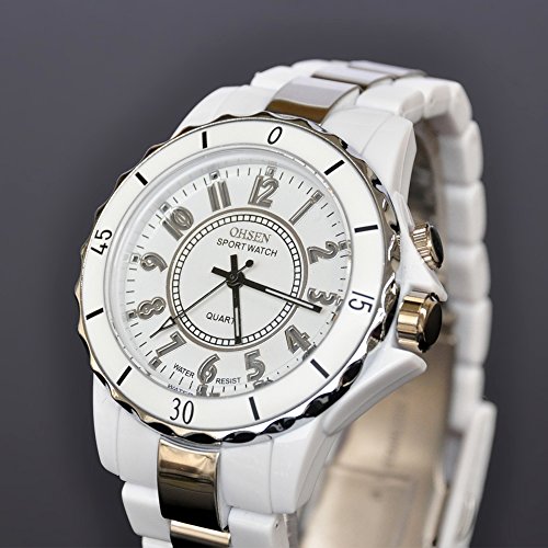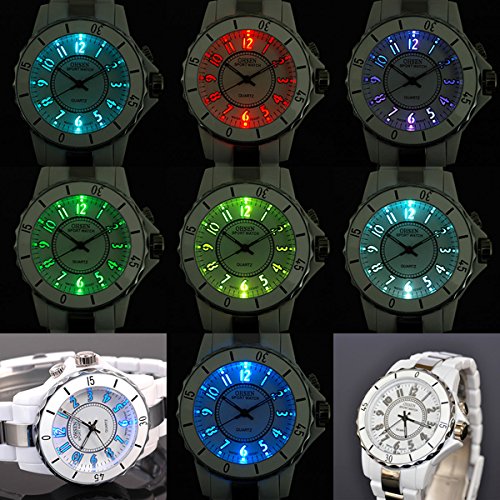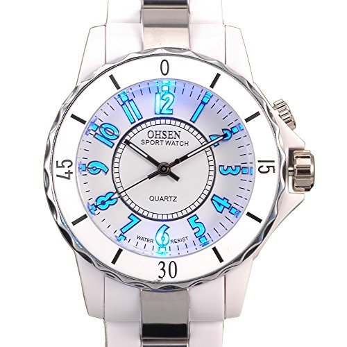 -. Title : Ohsen White Color Womens Ladies Quartz Wrist Watch with 8 Color LED