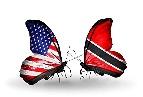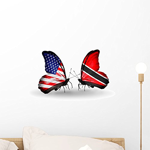 Wallmonkeys Two Butterflies with Flags Usa and Trinidad and Tobago Peel and Stick Wall Decals WM156337 (18 in W x 12 in H)